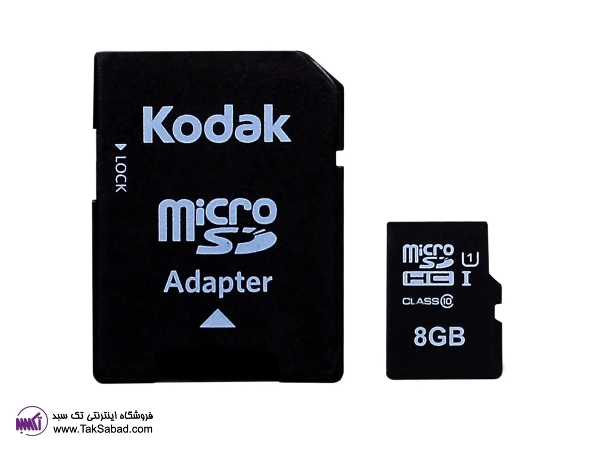 کارت حافظه Kodak microSDHC Memory card دارای 8 گیگ ظرفیت،سرعت استاندارد U1 و کلاس 10 بوده که مناسب برای ذخیره سازی حجم بزرگی از اطلاعات است .سرعت خواندن اطلاعات کارت حافظه حداکثر تا 30 مگابایت بر ثانیه و سرعت نوشتن آن حداکثر تا 11 مگابایت بر ثانیه است.