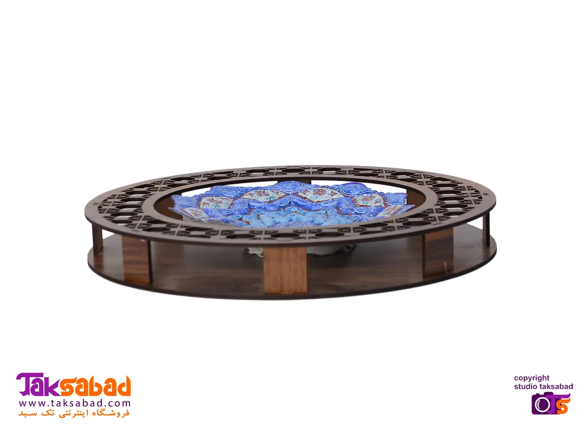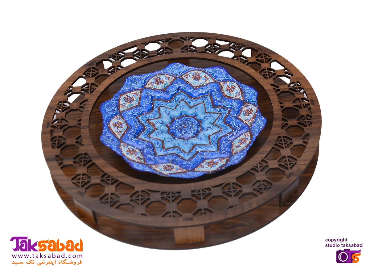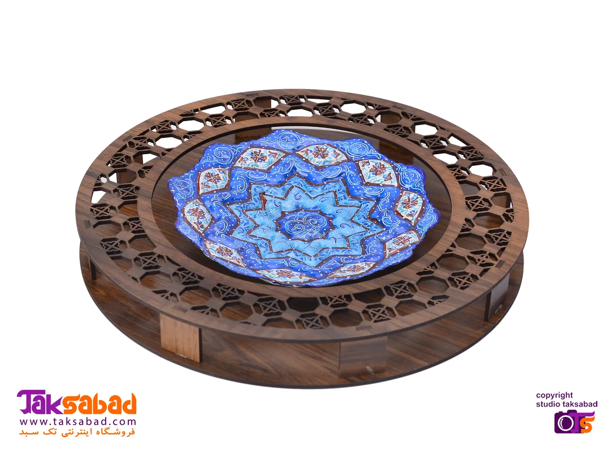 بشقاب میناکاری 16 سانتی با قاب گرد مشبک محصولی بسیار شکیل و مناسب برای هدیه و تزئینات دکوراسیون منزل و محل کار می باشد. این قاب گرد زیبا ترکیبی از چوب و هنر زیبای میناکاری اصفهان می باشد که از معروف ترین صنایع دستی این استان می باشد. ابعاد کلی قاب 3*26*26 سانتی متر می باشد و به صورت 2 لایه طراحی شده است. زمینه ی لایه چوبی روی قاب به صورت مشبک طراحی شده است که زیبایی قاب را دوچندان نموده است. در قسمت پشت قاب سوراخی به منظور آویزان کردن قاب تعبیه شده است تا بتوانید آن را به دیوار آویزان کنید.