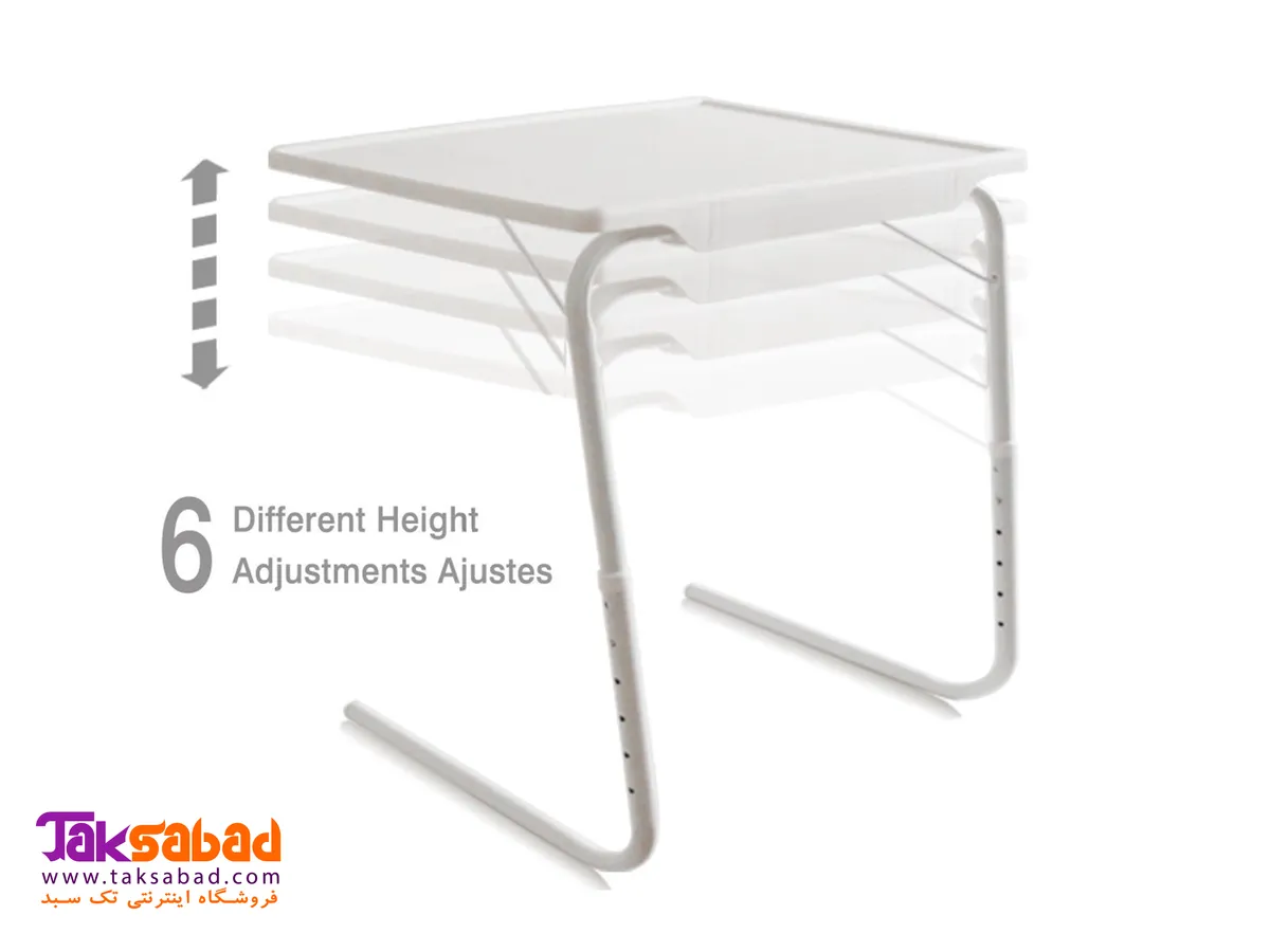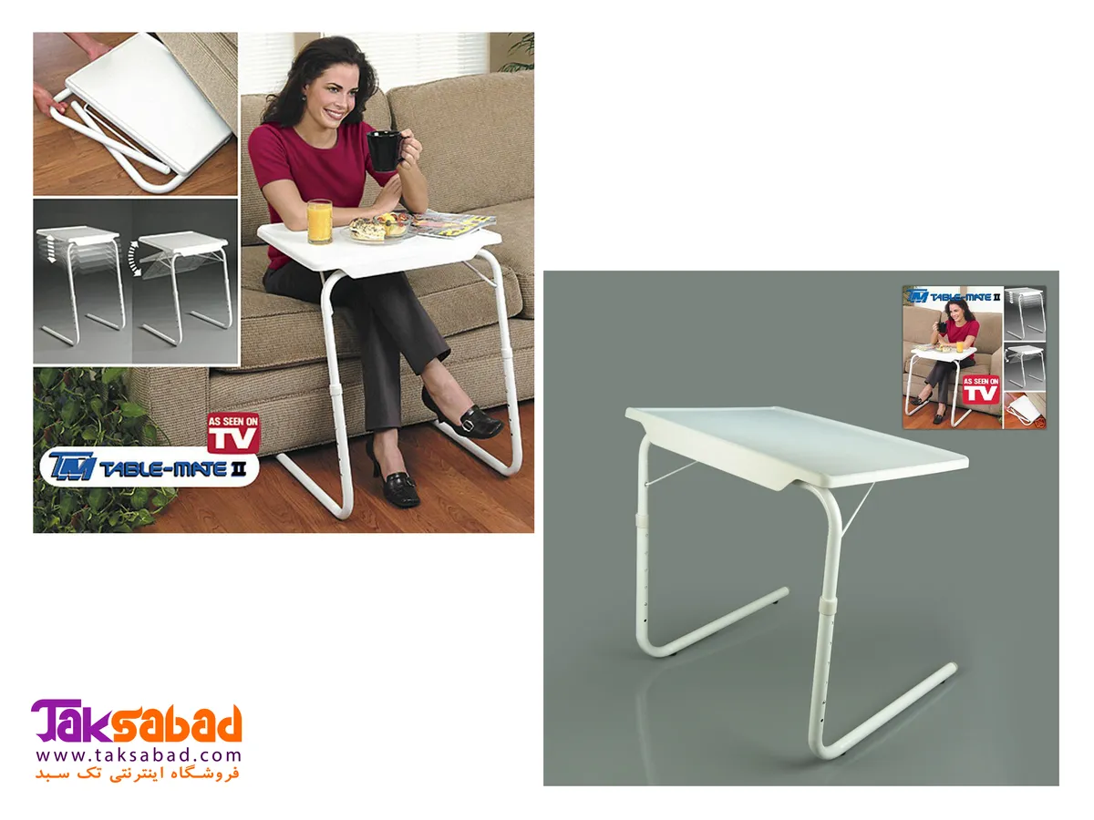 میز تاشو TABLE MATE قابل استفاده در تمامی مکان ها مانند منزل،محل کار و به ویژه مسافرتهاست وقابل تنظیم متناسب با ارتفاع مورد نیازتان می باشد.
