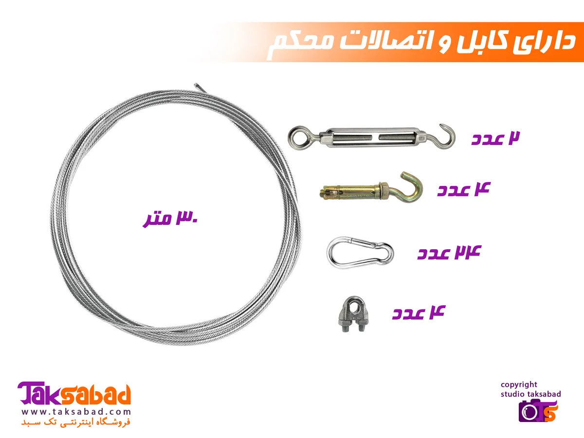 وجود سایبان در باغ، حیاط،کارگاه و هر فضای بازی یکی از مهم ترین ضروریات برای محافظت از وسایل،خودرو، ایجاد سایه روی استخر و راحتی برای استفاده از آت فضا می باشد. سایه بان نادیاهوم بسیار با کیفیت و بزرگ بوده و بر خلاف سایه بان های موجود در بازار با تمام وسایل و لوازم مورد نیاز برای نصب ارسال می گردد تا بدون هیچ دغدغه ای برای خرید وسایل و صرف وقت، آن را نصب نمایید. سایبان نادیاهوم از تور شید با سایه 80 درصد تولید شده است تا بیشترین سایه را فراهم نماید. ابعاد آن 3*6 متر بوده و دور تا دور آن نوار دوزی شده و دارای سوراخ با حلقه های فلزی است. به همراه این سایبان 4 عدد رول پلاک قلاب دار، 4 عدد کورپی( بست بکسل فولادی) ، 2 عدد مهار کش، 24 عدد کارابین و 30 متر سیم بکسل ارسال می گردد تا فقط نصب نموده و از سایه عالی آن بر روی خودرو، استخر، محل نشستن و ... استفاده نمایید. این سایبان به دلیل حالت ریلی ، به راحتی با دو بند تعبیه شده باز و بسته می شود تا در شب و یا زمانی که نیاز ندارید آن را به راحتی جمع نمایید. زیبایی، نصب آسان، ابعاد بزرگ، ریلی بودن، و کامل بودن تجهیزات نصب از مهم ترین مشخصات این کالا می باشد.