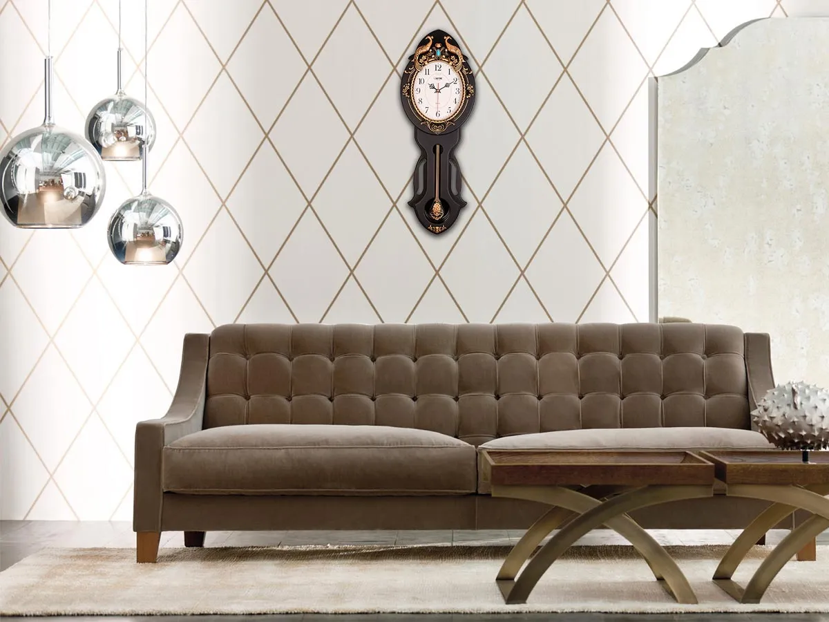 ساعت دیواری پاندول دار نیک تایم هر دو خصوصیت سادگی و شیک بودن را باهم دارد. بالای ساعت دارای طرح و نقش است و قسمت میانی و پایینی ساعت ساده است. رنگ قهوه ایی سوخته ساعت باعث شده تا از لحاظ کلاس استفاده در سطح بالایی به نظر برسد و شبیه ساعت های چوبی رنگ شده باشد.