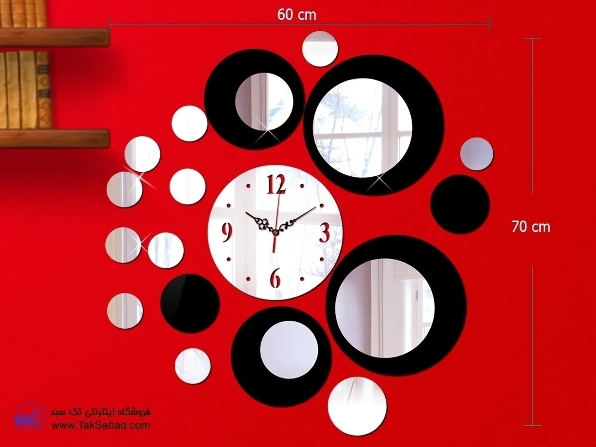 ساعت دیواری آینه ای افلاک در ابعاد 70*60 سانتی متر عرضه می گردد و در سایزهای بزرگتر و رنگ های متنوع تر قابل ارائه است. جهت تعیین سایز و رنگ دلخواه خود با شماره تلفن فروشگاه تماس بگیرید.ساعت دیواری افلاک درون جعبه چوبی زیبا به مشتری داده می شود و دارای سه سال گارانتی موتور است.
