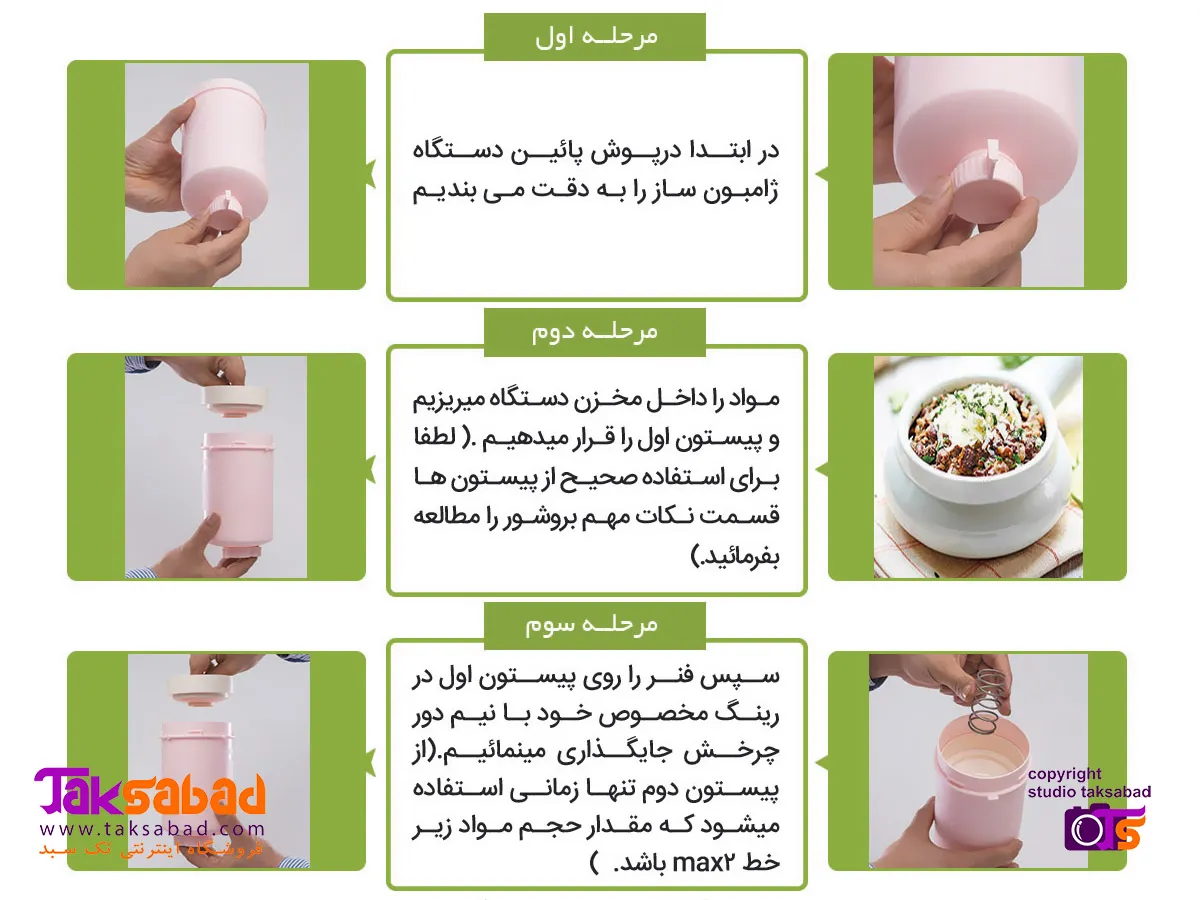کافی است مواد اولیه مورد نظر خود را با انواع ادویه و مزه ها چرخ نموده و داخل ژامبون ساز بریزید، درب آن را بسته و با استفاده از شاسی آن ها را فشرده سازید، حالا باید داخل قابلمه آب قرار داده تا ژامبون کامل پخته شود. نتیجه کار شما را شگفت زده خواهد نمود.