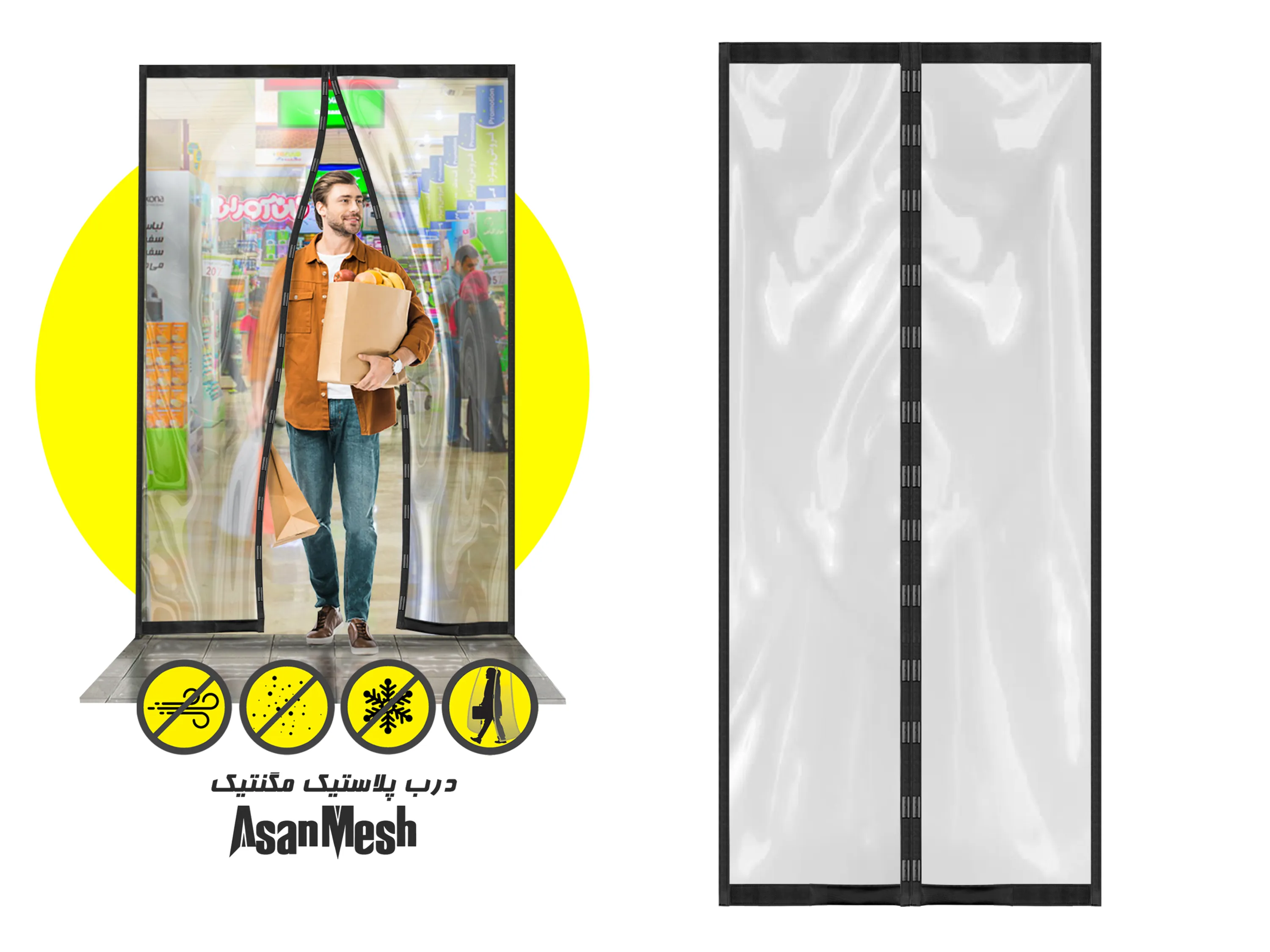 پرده پلاستیک آهنربایی آسان مش یکی از با کیفت ترین پرده های آهنربایی در کل ایران است. این پرده ها از بهترین جنس پلاستیک شفاف تولید شده امند و دارای سایز بندی استاندارد می باشند. در صورتی که سایز مورد نظر شما در بین آن ها نیست می تواندی به صورت اختصاصی با تماس با فروشگاه، سفارش دهید. مگنت های قوی و متعدد باعث می شوند که پس از هر بار رفت و آمد پرده ها به راحتی و به صورت اتوماتیک باز و بسته شوند.