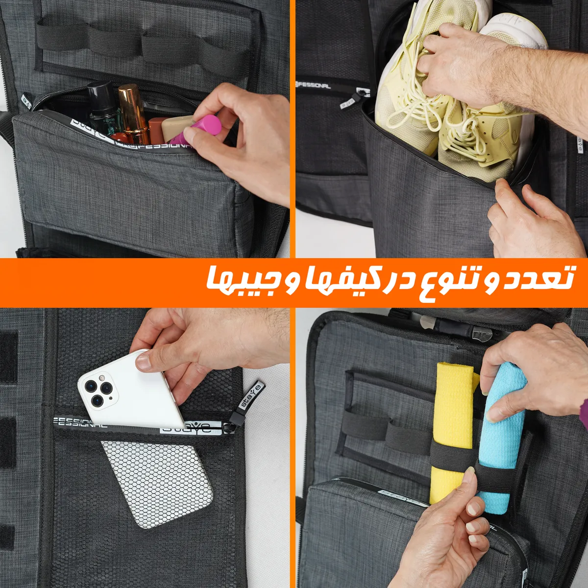 کوله سفری نادیاهوم یک مدل خاص و منحصر به فرد است. این کوله در واقع دارای زیپ هایی است که باعث می شود کوله کاملا باز شده و به جا لباسی اویزان نمایید و به همه محتویات آن دسترسی داشته باشید. در داخل کوله کیف های متععدی قرار دارند که امکان جدا سازی و اتصال داشته و استفاده از آن ها، برای سفر یک گزینه عالی خواهد بود جای کفش، لوازم ارایشی بهداشتی، لباس و ... از ویژگی های این کوله زیبا می باشد.