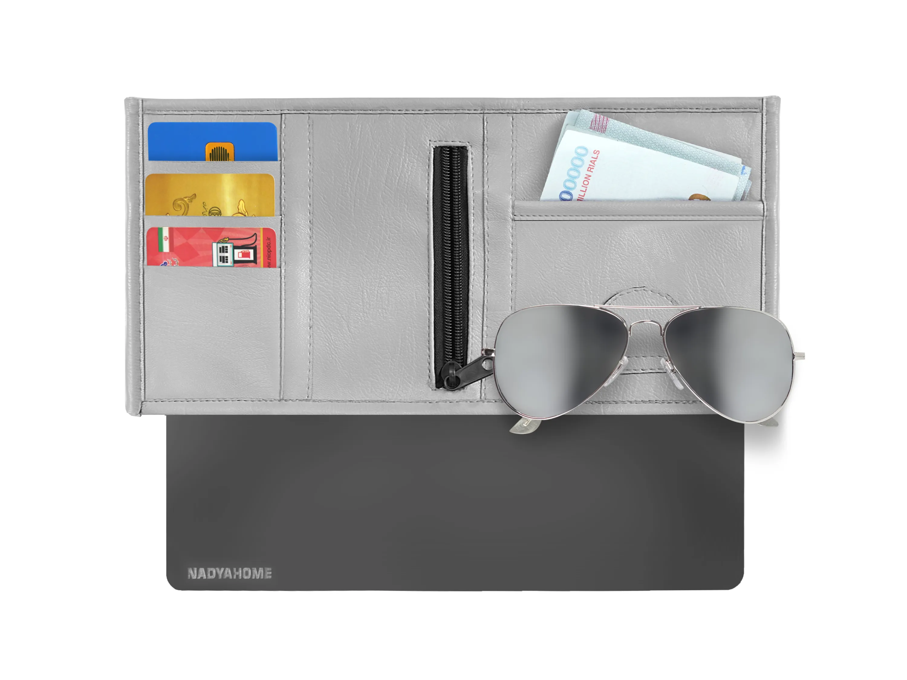 یکی از معضلات و مسایل زمان رانندگی، تابش آفتاب در چشمان ماست که علاوه بر فشار به چشم و ایجاد خستگی، ممکن است باعث تصادف نیز بگردد. گاهی زاویه تابش خورشید به صورتی است که آفالبگیر هم نمی تواند جلوی آن را بگیرد. برای همین برای شما یک کیف آفتابگیر کشویی تولید کرده ایم که با کش به آفتابگیر خودروی شما وصل می گردد. این محصول یک کالای دو کاره است fبه دلیل جیب های موجود می تواند یک نظم دهنده عالی باشد و هم یک ویژگی منحصر به فرد دارد، زیپی بر روی آت تعبیه شده که با پایین آوردن آن یک صفحه پلکسی گلس دودی پایین می آید تا اشعه های خورشید چشمان شما را آزار ندهد. این صفحه را با بالا بردن زیپ می توانید به سر جای خود برگردانید.